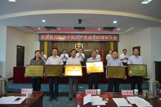 6月28日, 省质监局隆重举行纪念中国共产党成立97周年大会,表彰在省局各个工作岗位上涌现出的先进基层党组织、优秀党组织书记、优秀共产党员、优秀党务工作者,省局党组书记、局长、机关党委书记张岐云作了党课辅导。省质监局领导班子成员,省局机关全体党员,省局直属单位领导班子、支委委员和受到表彰的代表共150余人参加。省纪委、监委驻工商局纪检组组长田永明出席会议。